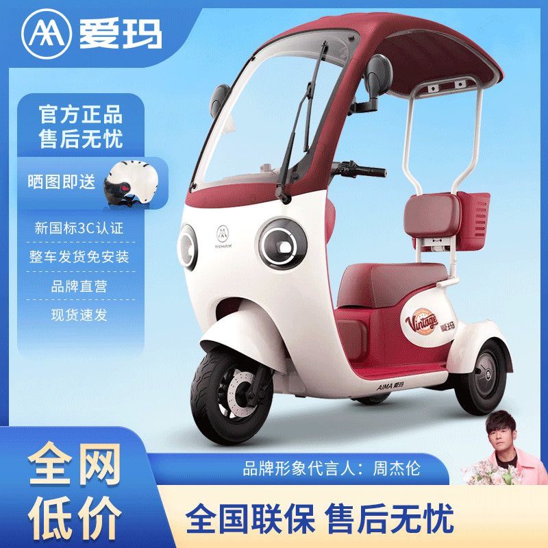 爱玛电动三轮车家用小型女士电瓶车老人老年代步车周杰伦代言