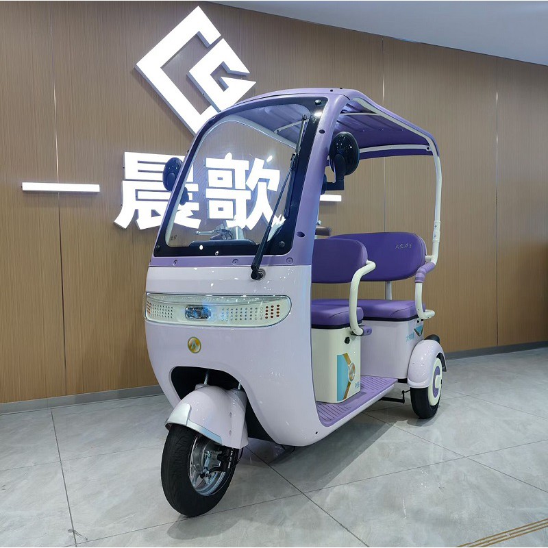 大安传奇电动休闲三轮车带棚接送孩子双排客货两用电瓶车休闲代步车
