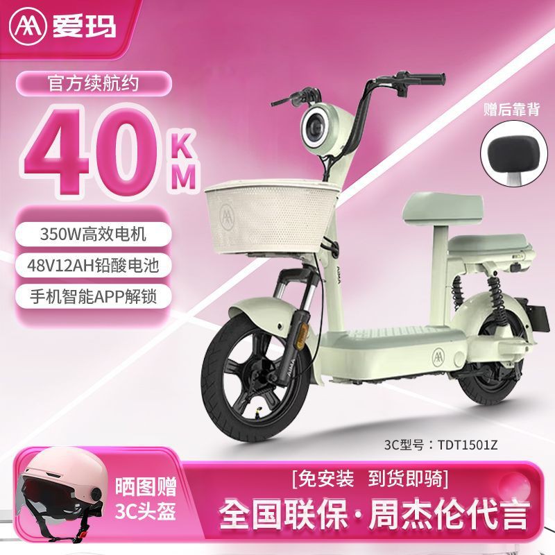 爱玛电动车小金豆48V12电动自行车成人电瓶车脚踏