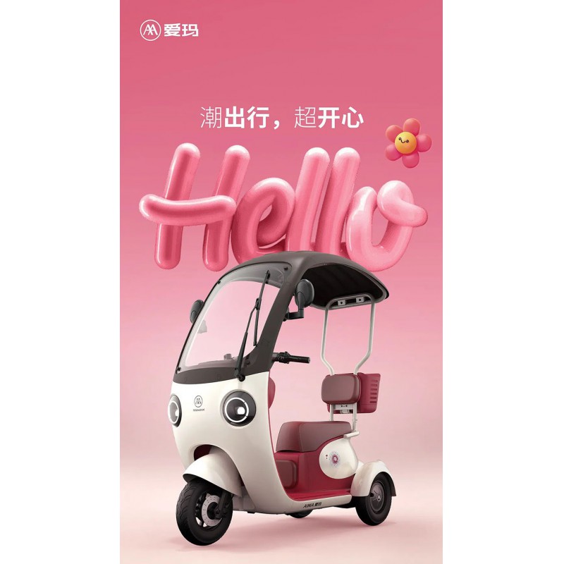 爱玛电动三轮车CQ700带蓬休闲开学季通勤女士接送孩子休闲代步